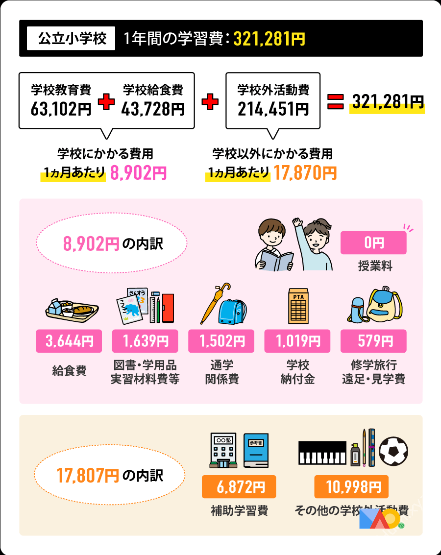 日本公立小学一年的费用大概1.7万元左右,包括学费、伙食费和课外活动费。私立小学贵5倍左右。