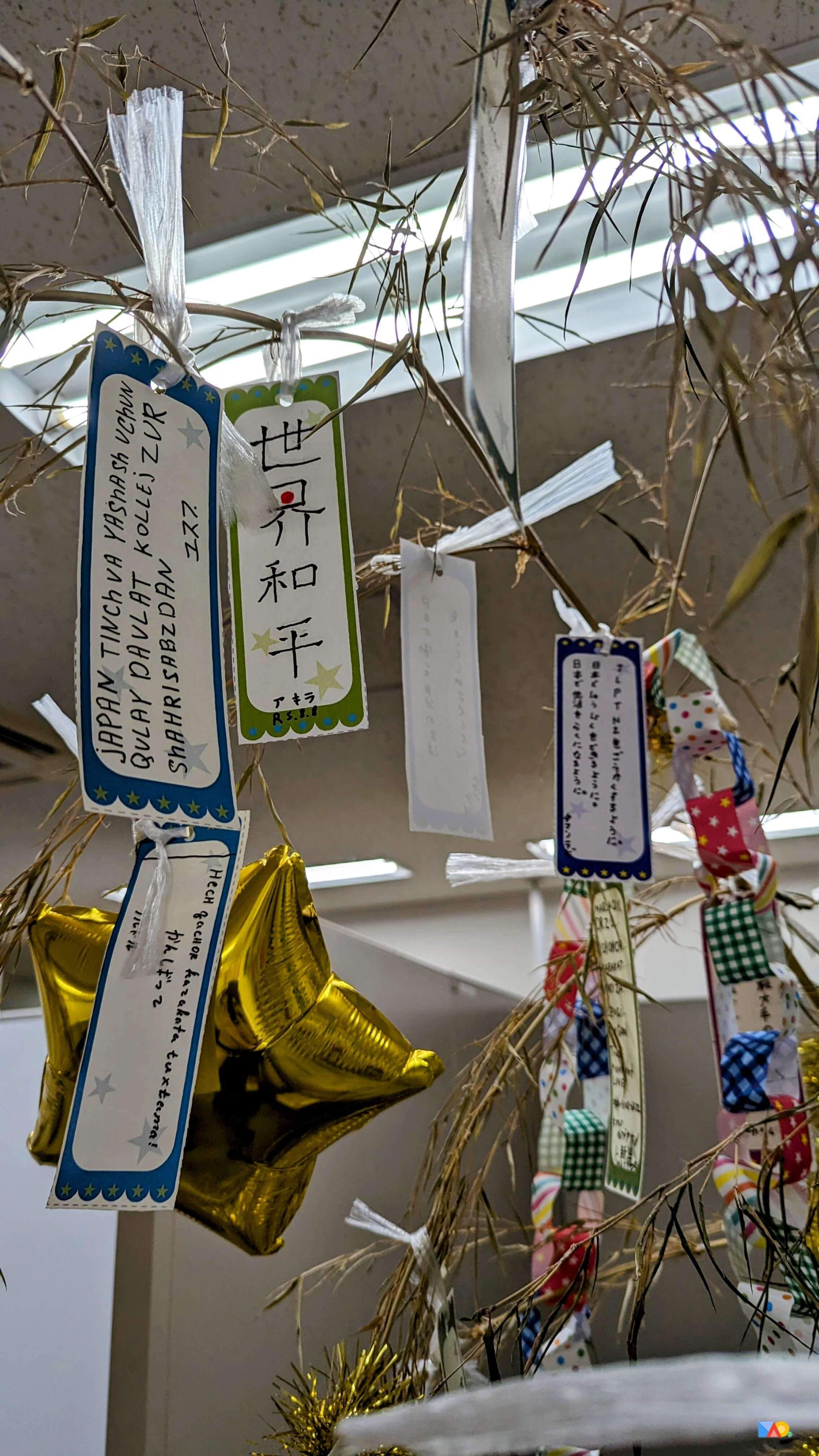 坐新干线去新潟的一家IT专门学校免费参观旅游。在祝愿树环节我写了「世界和平」。