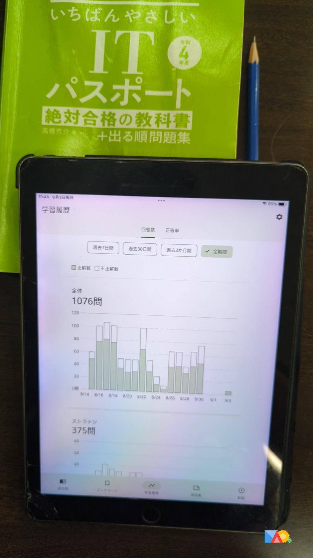 为了应对ITパスポート100道选择题的考试,准备了2个月,做了3000多道练习题。