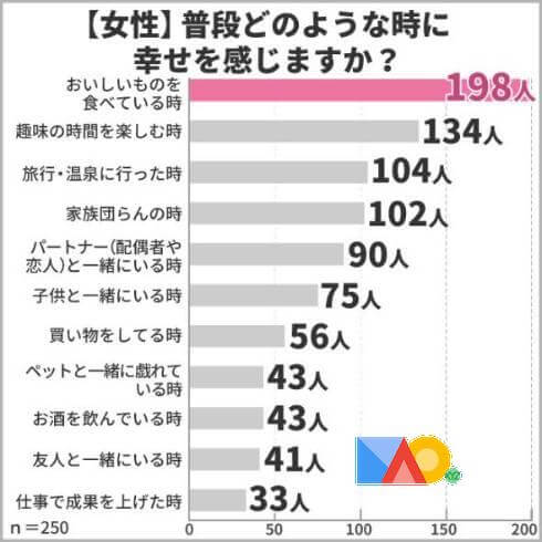 日本男女都认为感到最幸福的事情是吃好吃的和做感兴趣的。男的认为保证幸福感最重要的是有钱。
