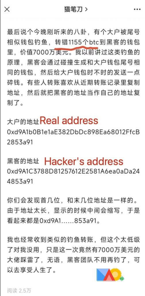 昨天看到一个因为钱包地址相似被诈骗千万的新闻。