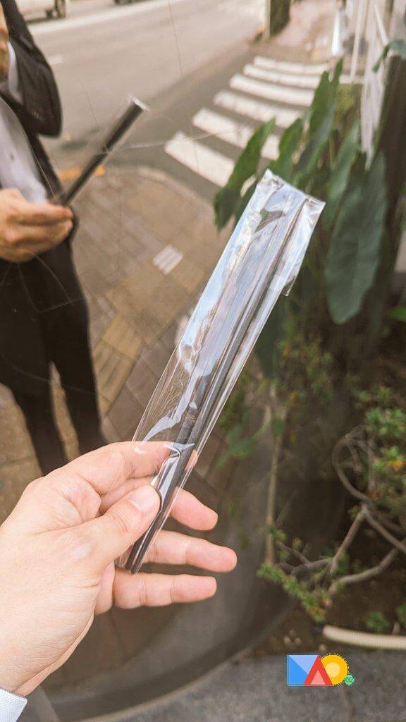 人模狗样ようにして日本での初めての面接を受けました。終わってから相手がお箸をプレゼントしてくれました。
