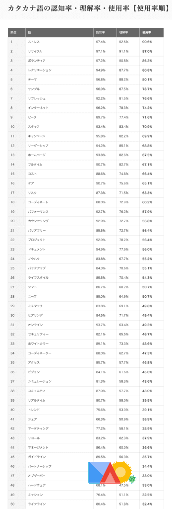 カタカナ単語の使用率ランキング トップ3は本当に日本っぽい😂 https://www.bunka.go.jp/tokei_hakusho_shuppan/tokeichosa/kokugo_yoronchosa/h14/katakana_shiyo.html