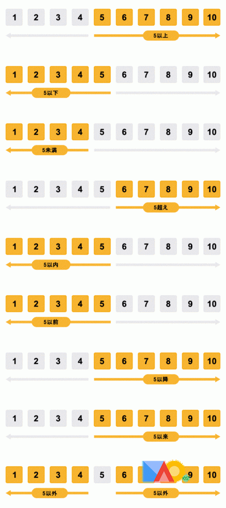 以下、以上、以降、以内、以来、以前。 以外、未満、超える