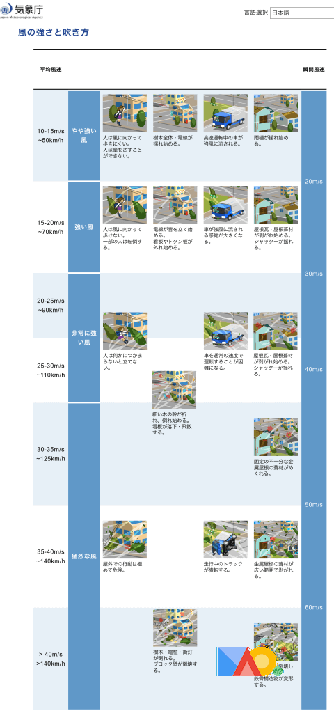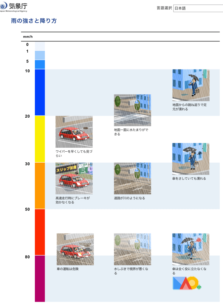 雨と風の強さ