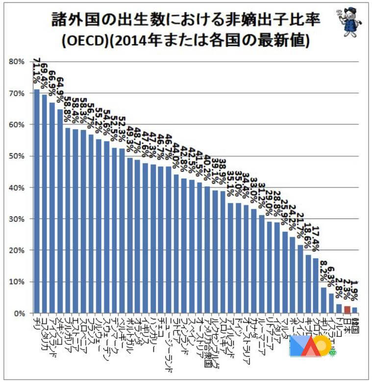 非嫡出子(婚外子)の割合は出生総数の2.29%を占めていた(2016年)