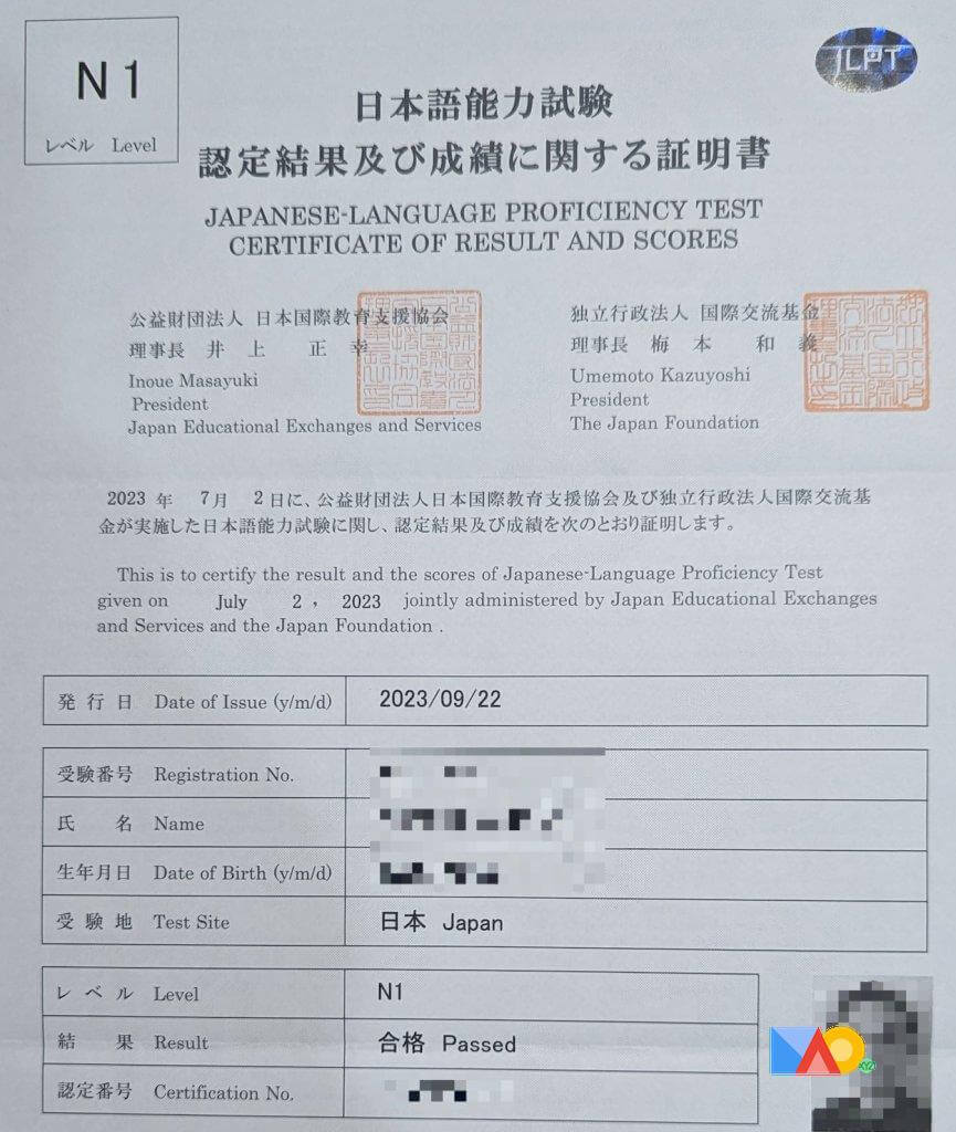 来日一年の成果: 一年皆勤 N1 合格 ITパスポート 合格 簿記3級 合格