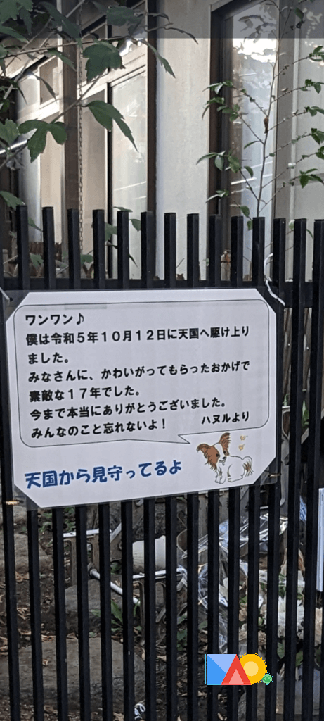 17歳で天国に行ったワンちゃんがお隣さんたちへのお礼の看板🥹🥹