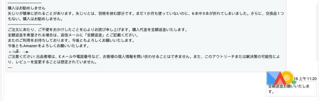 Amazonで購入した商品は品質が悪かったので、低評価をつけた。そして驚いたことに、出品者から全額返金っていう連絡があった。 僕は返金してくれたら、低評価を削除するって返事した。 まるで淘宝に戻ったみたい。日本でもこういうやり方は普通なのかな? 😂