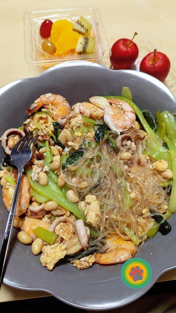 今日の夕飯は焼きビーフン🍝🦐🦑🥬🍳 本当は焼きそば作ろうと思ってたけど、イオンに麺が売ってなかったんだ