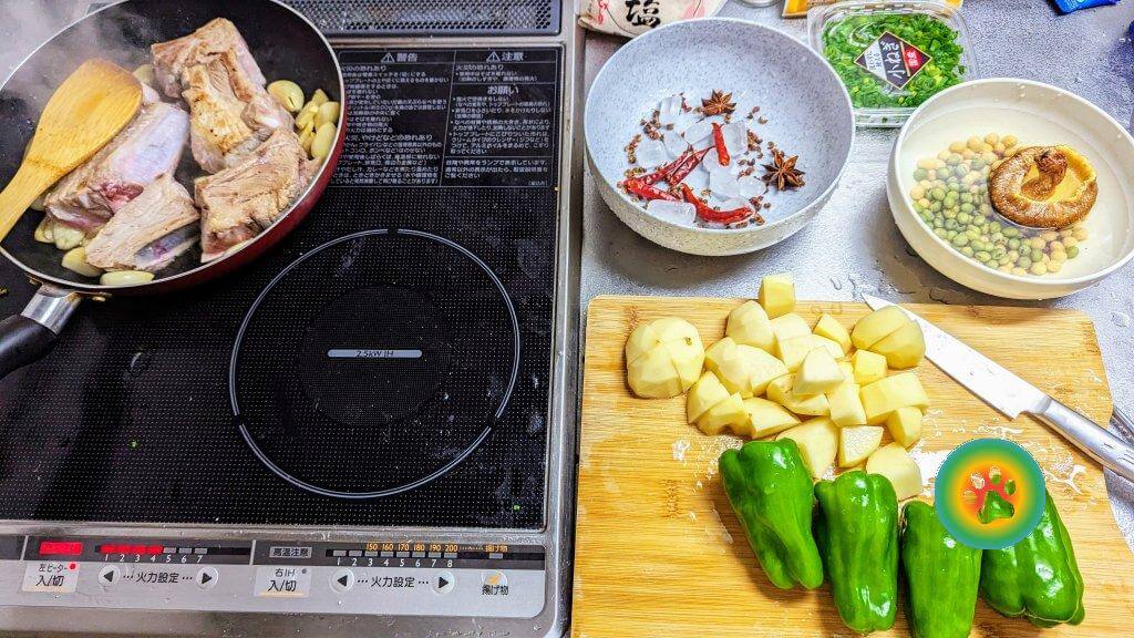 今日の晩ご飯はじゃがいもとスペアリブの煮込み🍖🥔