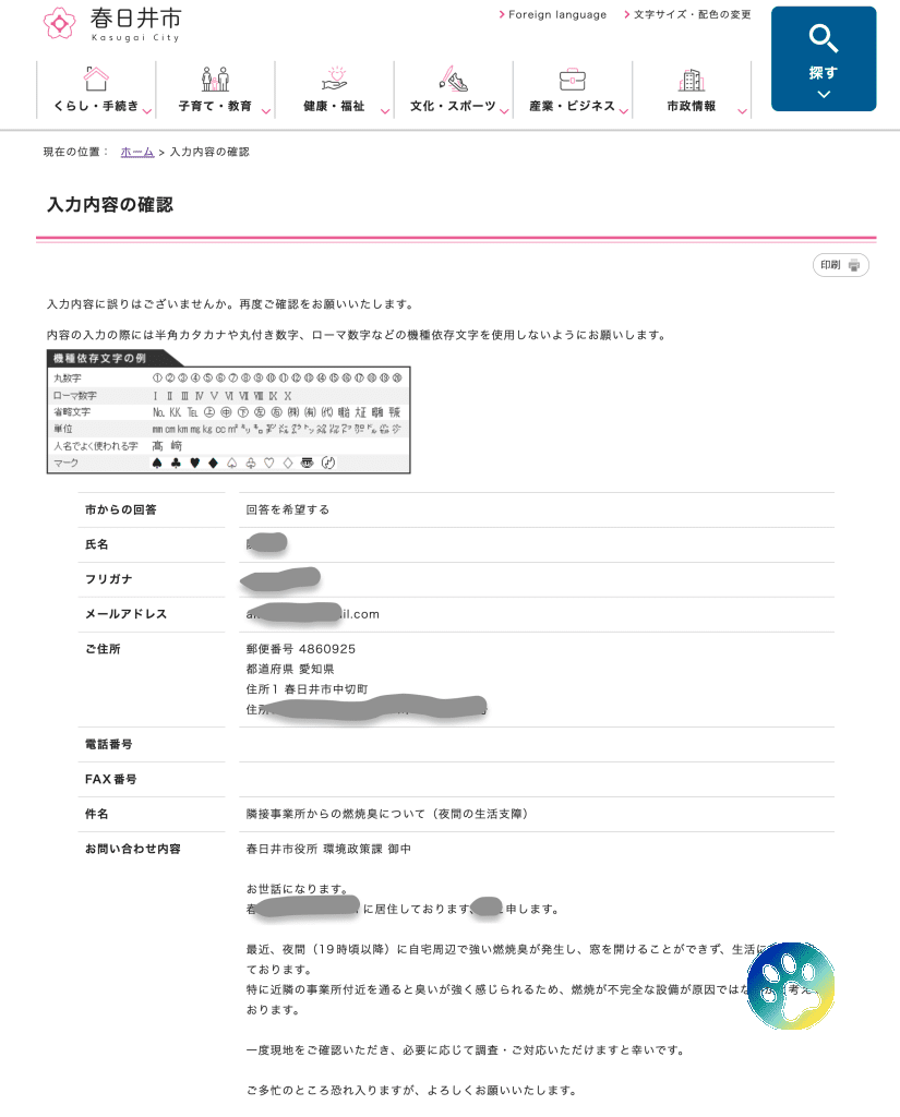 日本に来て初めて苦情出した! 引っ越してから隣の燃料会社の臭いがやばくて、市役所のサイトから通報したよ😂
