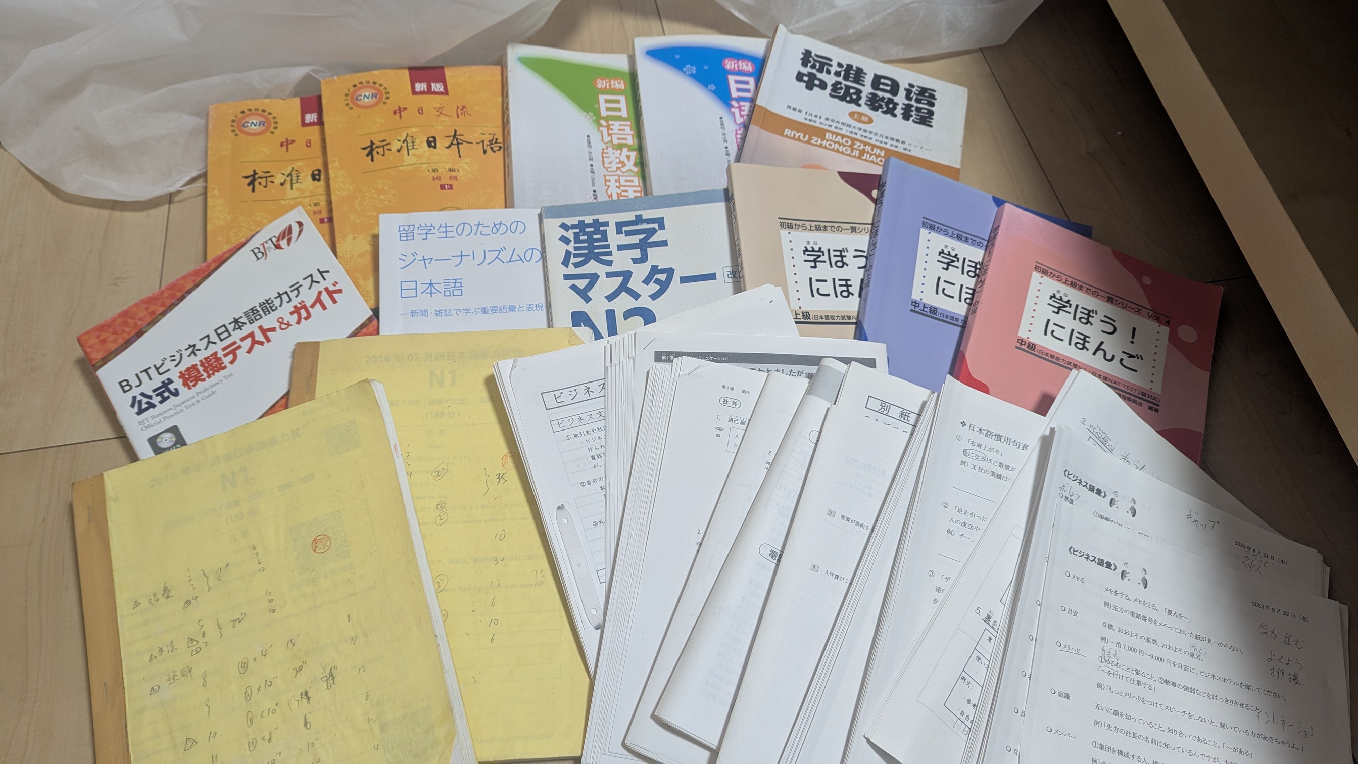 日本に来る前〜来日後1年半の日本語勉強資料です。 2年ほど保管してたが、引っ越しを機に新生活を始めるので、お正月明けに処分します。 もし気にしない方がいれば、声をかけてください。 ただし、メモはかなり雑です😅