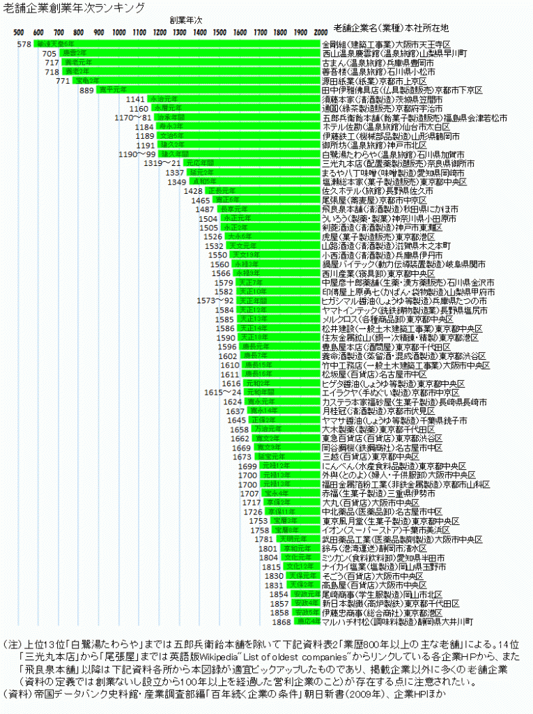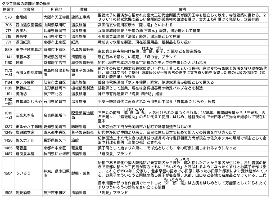 日本では、起業してから1000年を超える企業は九つがある。最も古い会社は大阪の「金剛組」だ。 https://www.kongogumi.co.jp/
