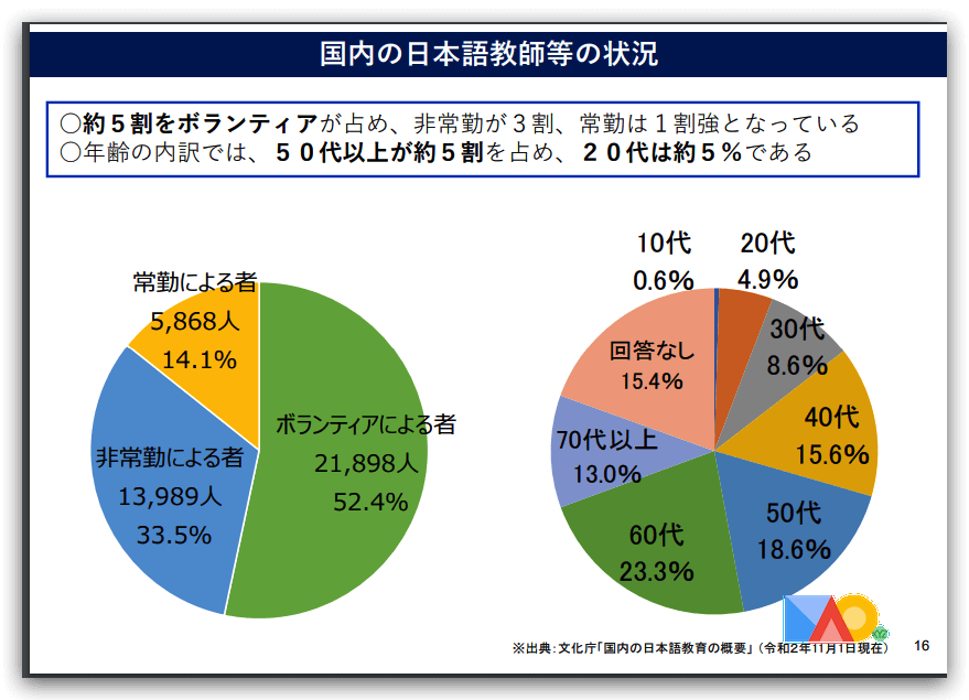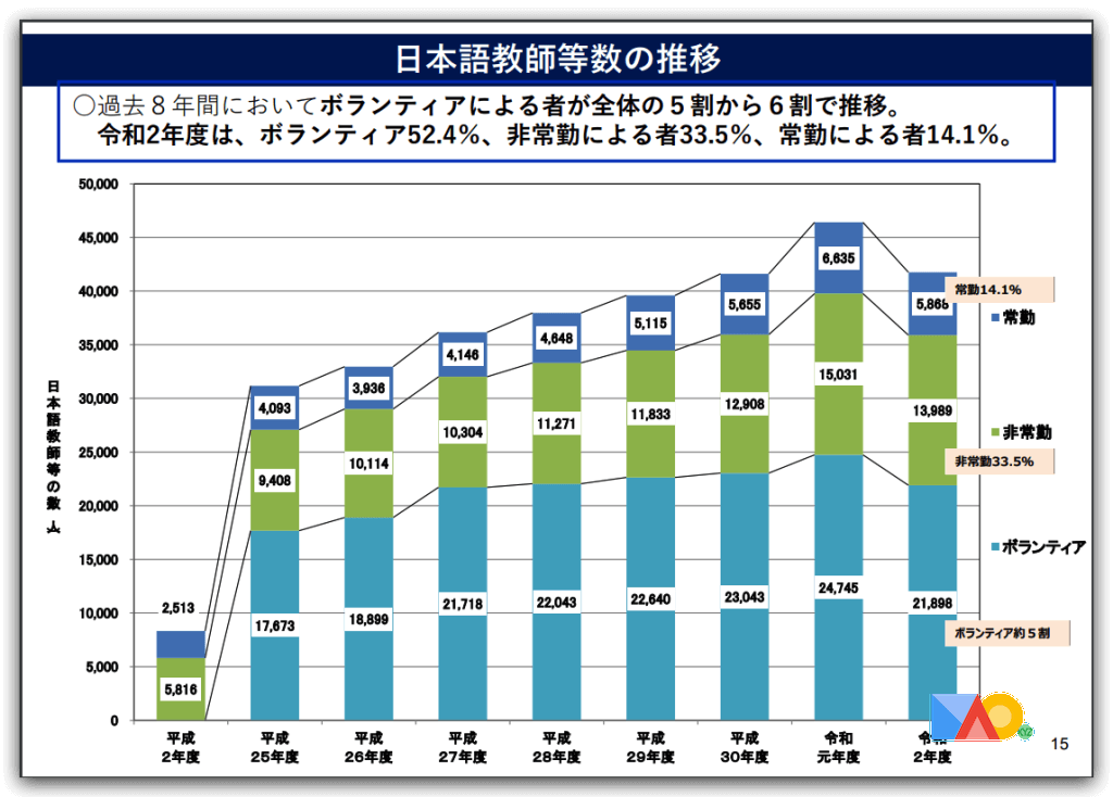 日本語教育調査 https://www.bunka.go.jp/seisaku/bunkashingikai/kokugo/nihongo/nihongo_112/pdf/93725301_08.pdf