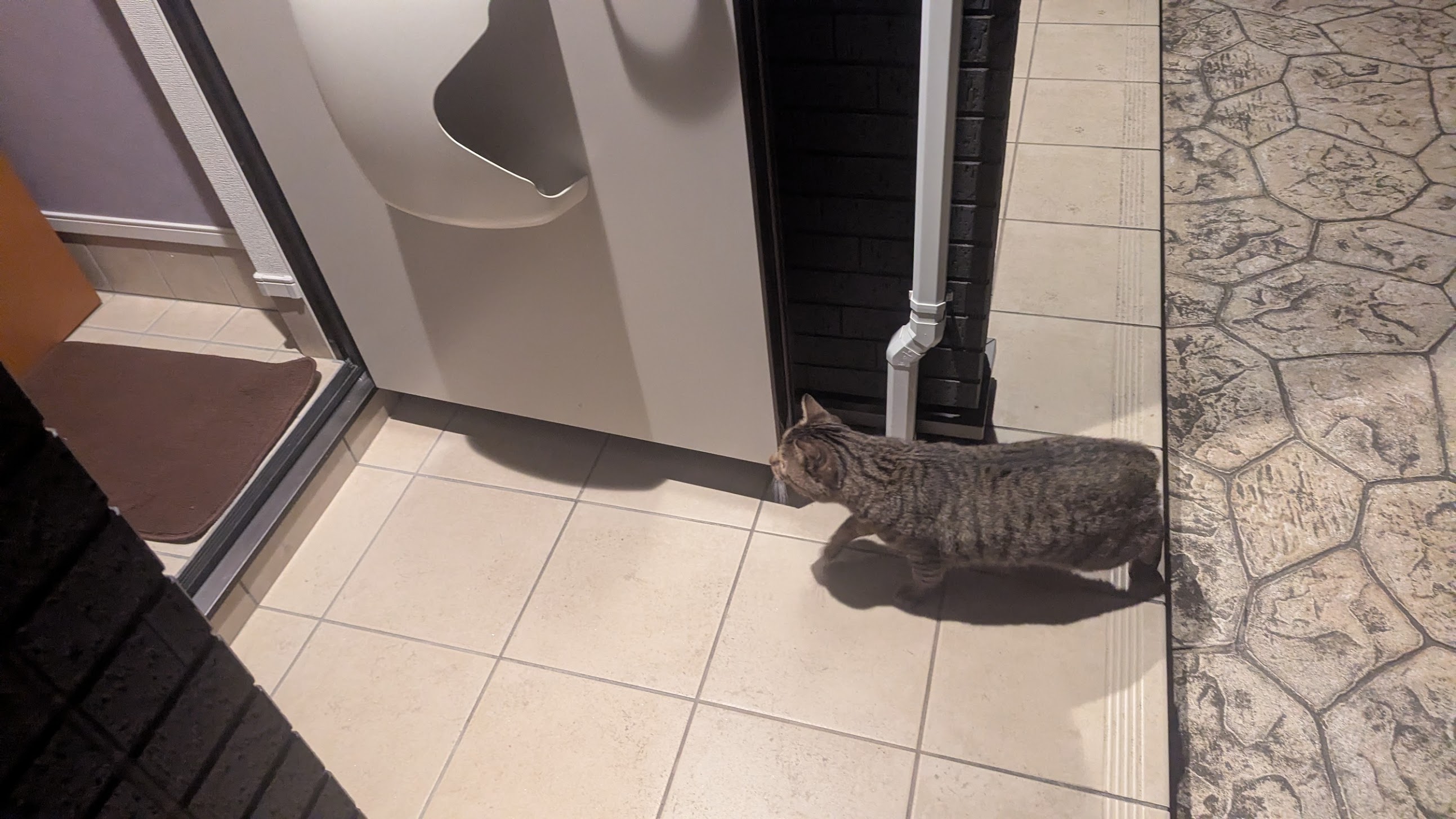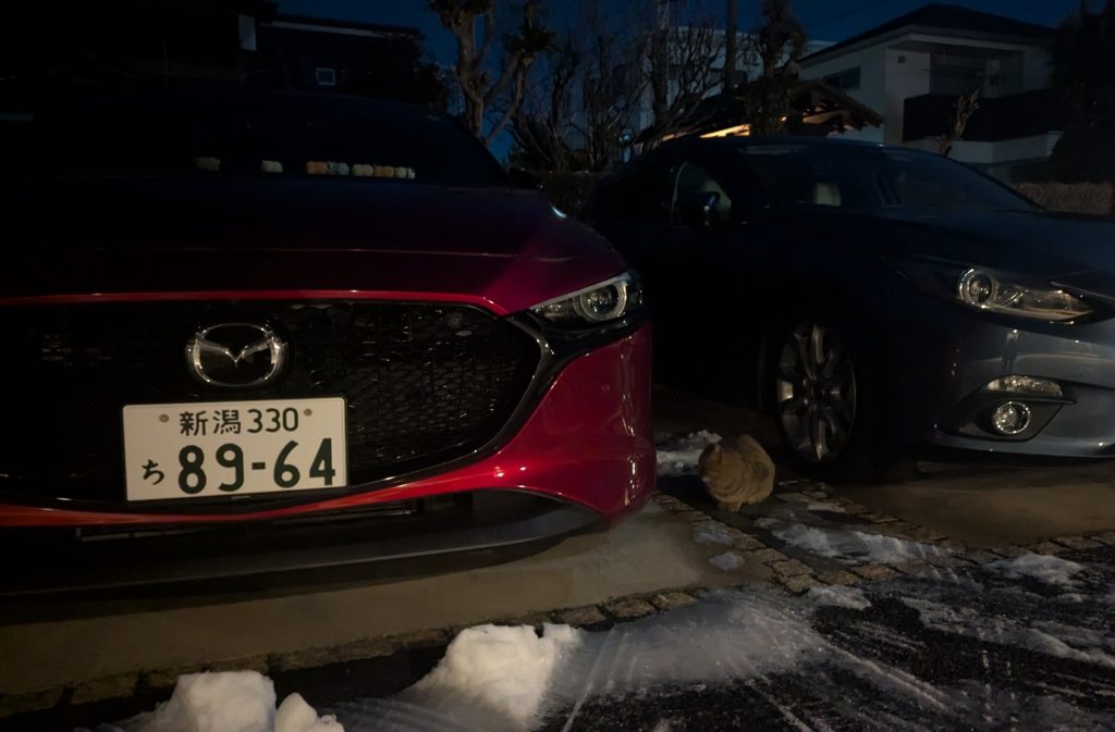 ご近所で飼われている(たぶん放し飼いの)猫ちゃんみたい。 この前は雪が降って寒かったせいか、車を停めたら下にもぐり込んで暖を取ろうとしてて。 夜にドアを開けたら、興味津々で部屋の中を視察しようとしてきた😄