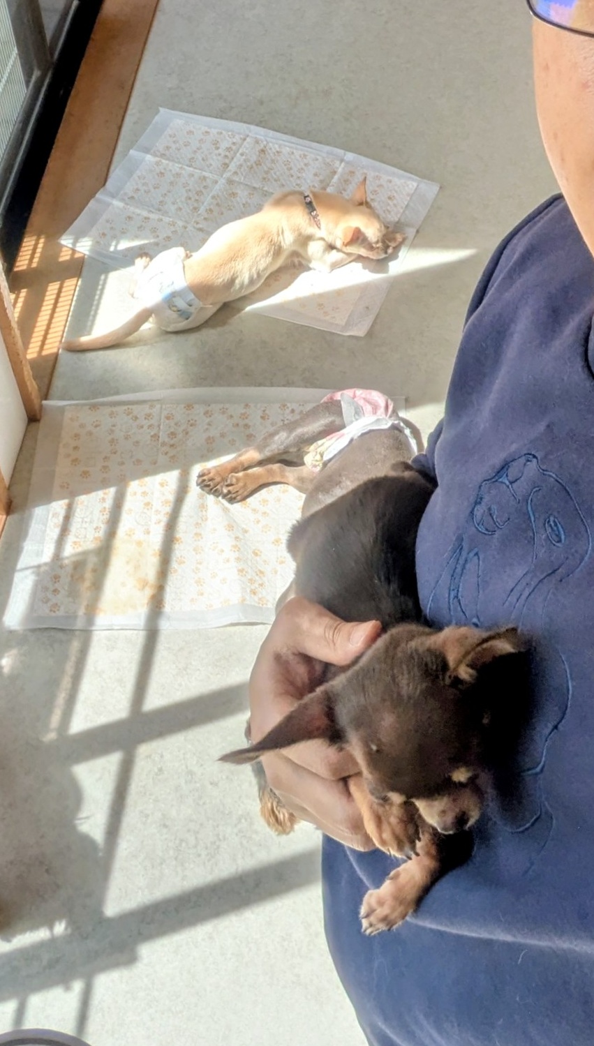 ずっとケージにいたチワワのアクアちゃん、やっと外に出してあげられた!つぶあんちゃんとめちゃくちゃ楽しそうに遊んでた! #保護犬 #ボランティア