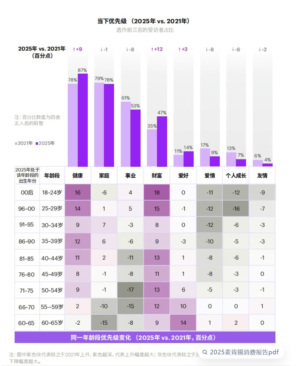 2025年の中国の消費者レポート👇 20代は健康とかお金には興味あるけど、 仕事とか恋愛はあんまり気にしてないらしい。 とにかく貯金して全然使わない感じで、 完全に寝そべりだち。