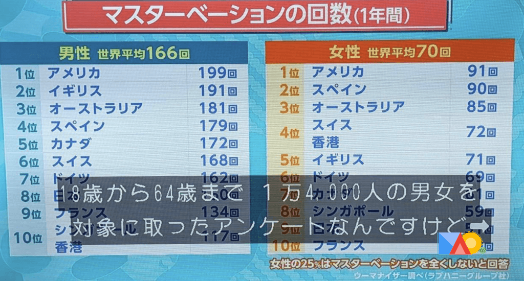 各国マスターベーションランキング