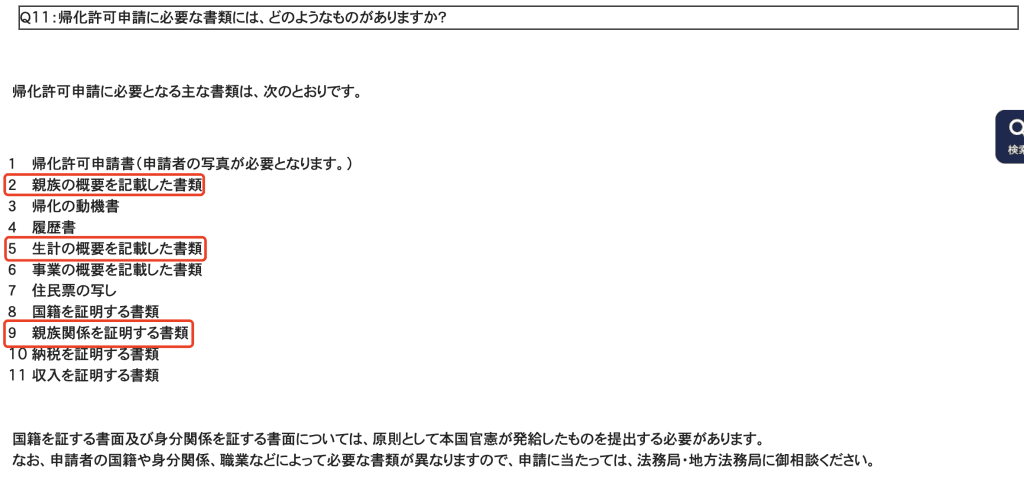 帰化するつまりなら、この三つが面倒だと思う。 それぞれとは、両親の結婚証書、自分の出生証明書、親族関係証明書だろう。 https://www.moj.go.jp/MINJI/minji78.html#a11