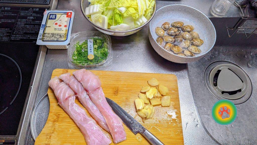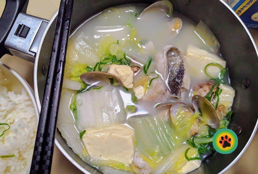 今日の夜ご飯 豆腐+アサリ+魚スープ